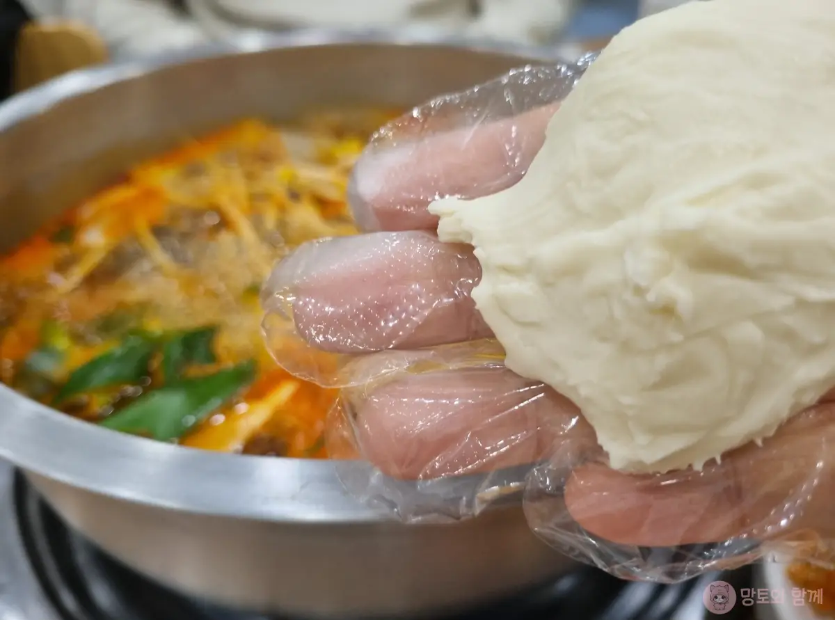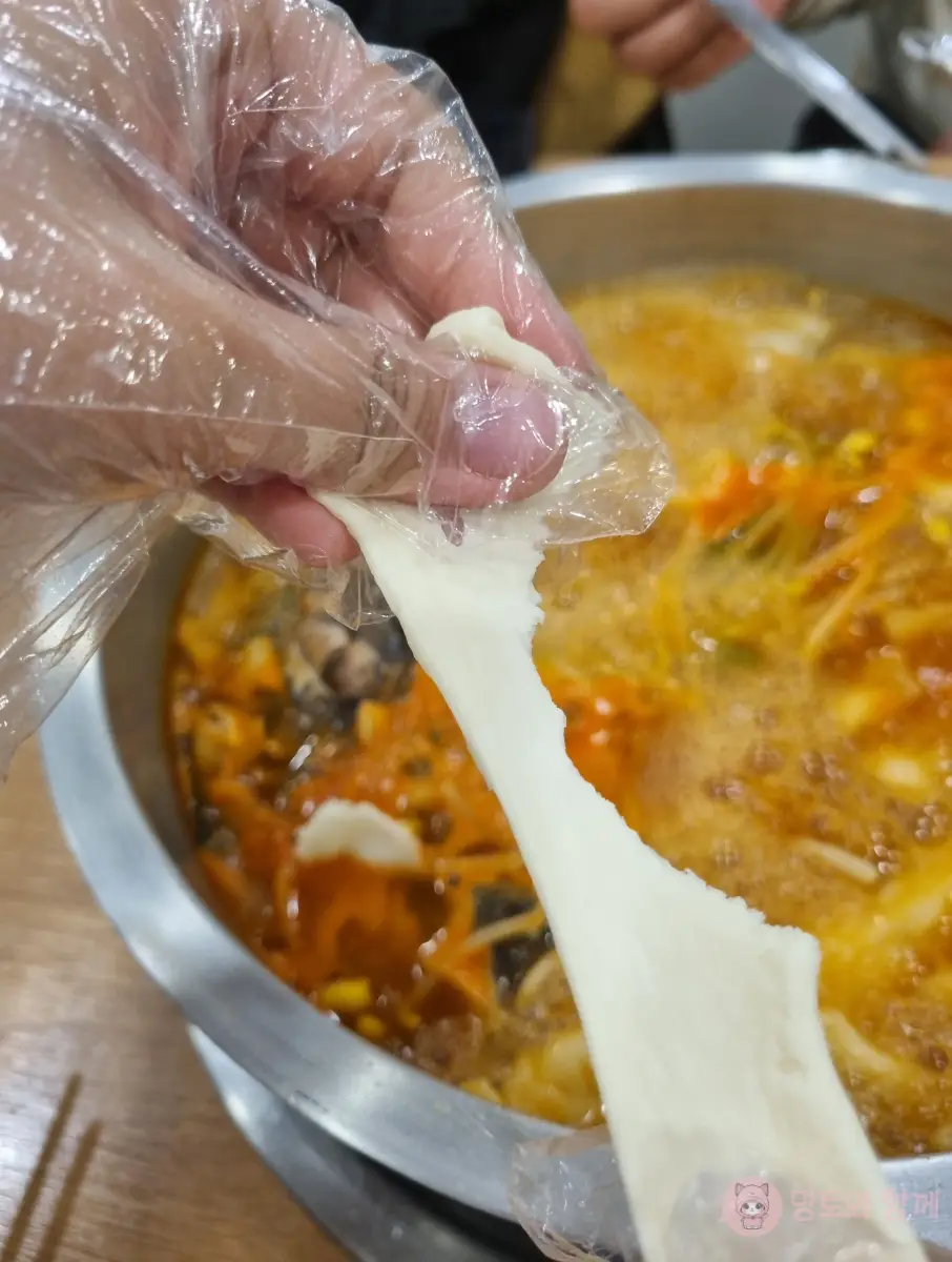 저희는 망토와 함께 3명이 갔는데, 기본인 동태탕을 주문했어요. 2인분을 주문했지만 수제비 반죽은 3개를 주시는 사장님의 센스~!