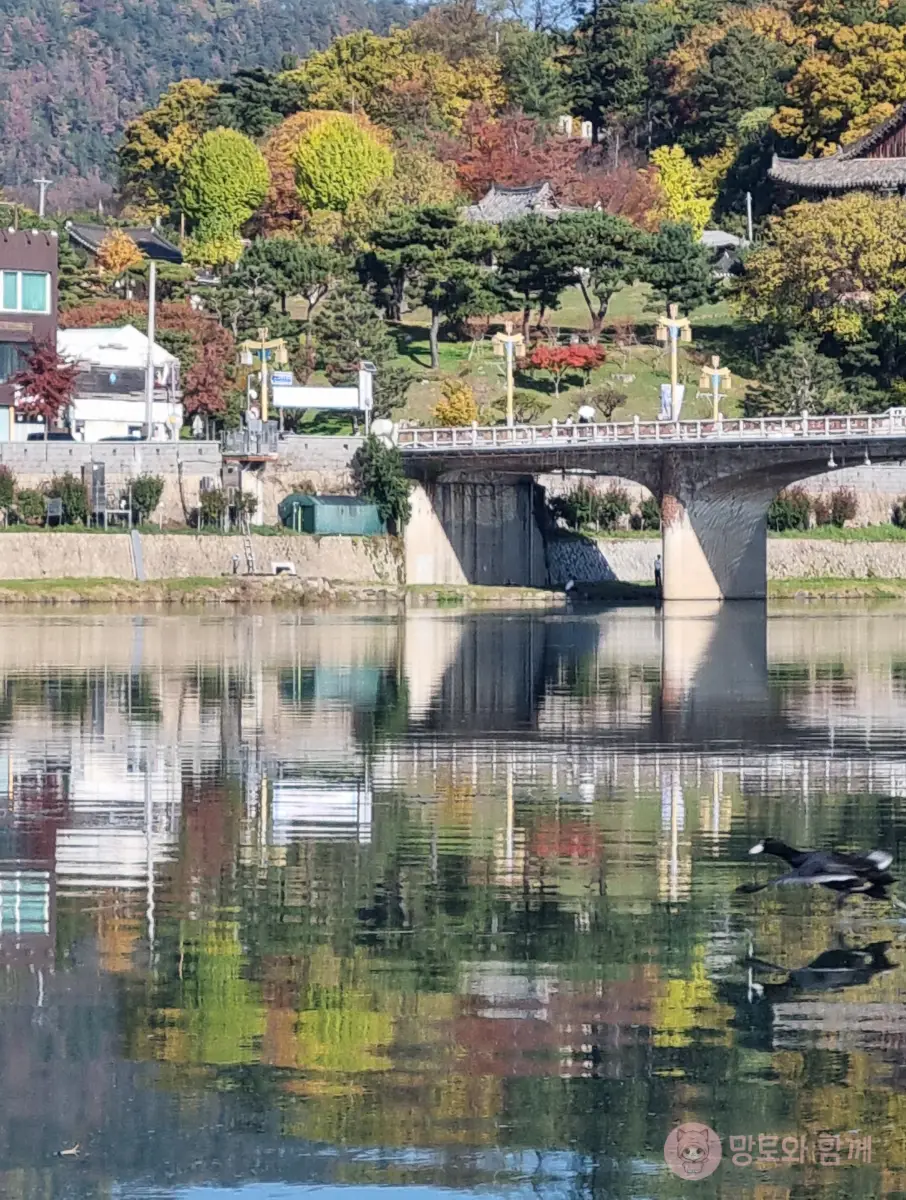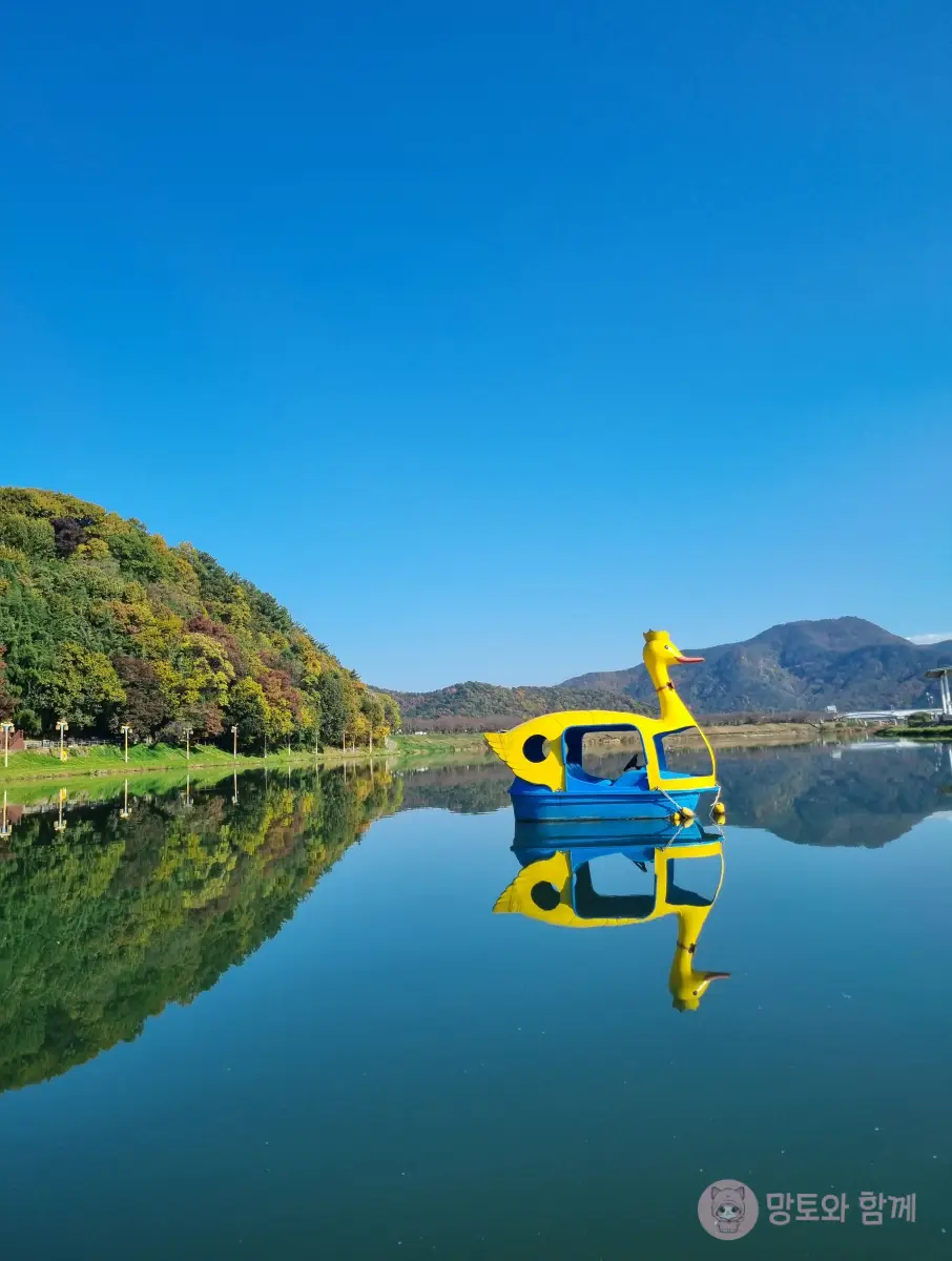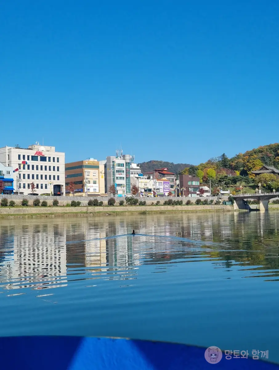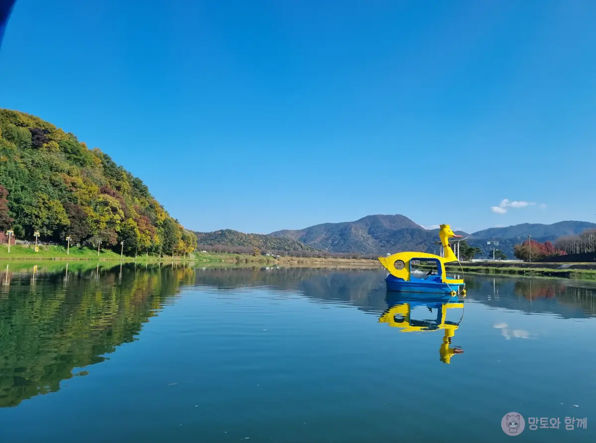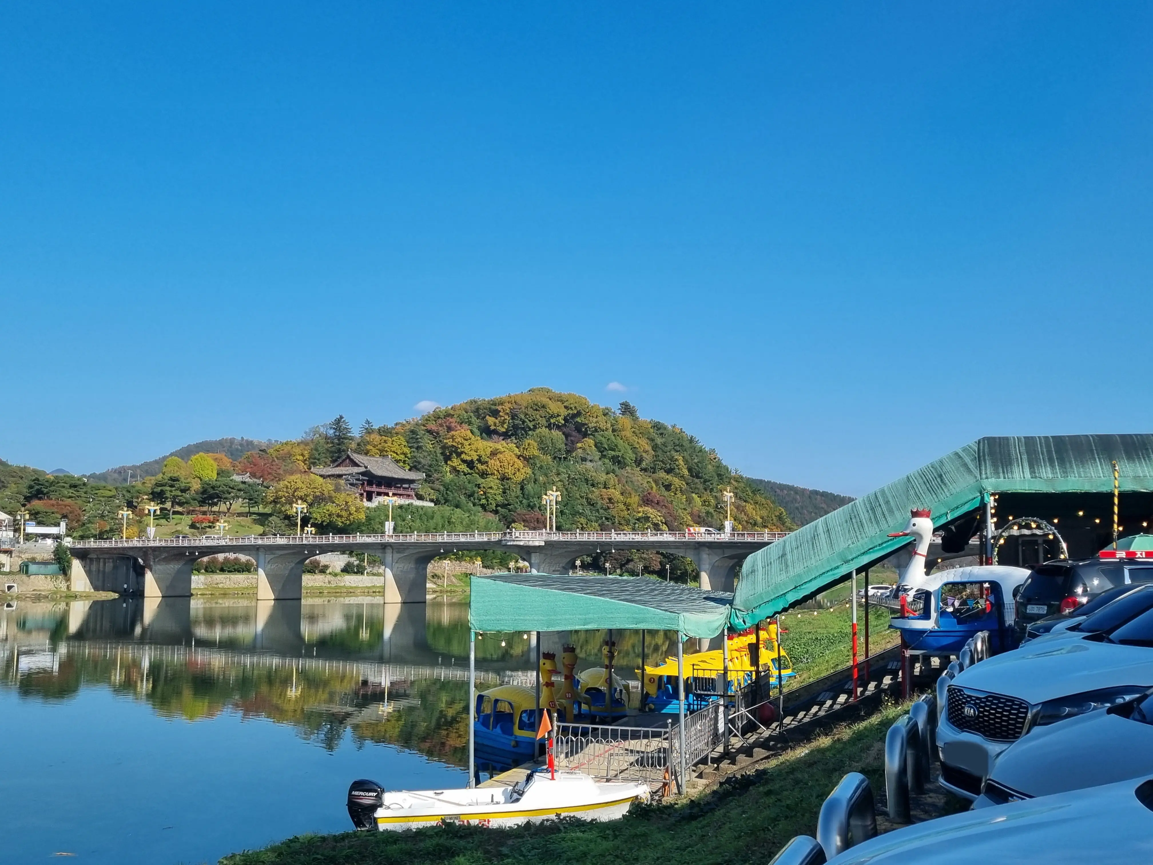 밀양 하면 영남루인데요. 영남루는 이미 가본 곳이라 이번에는 패스를 하고, 밀양강에서 오리배를 탈 수 있다고 해서 찾았는데요. 날씨도 좋고, 가을 단풍 풍경도 좋아 정말 만족스러운 경험이었어요.