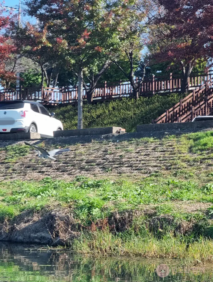 우리가 가까이 가니 오리가 날아가버려요. ㅎㅎ