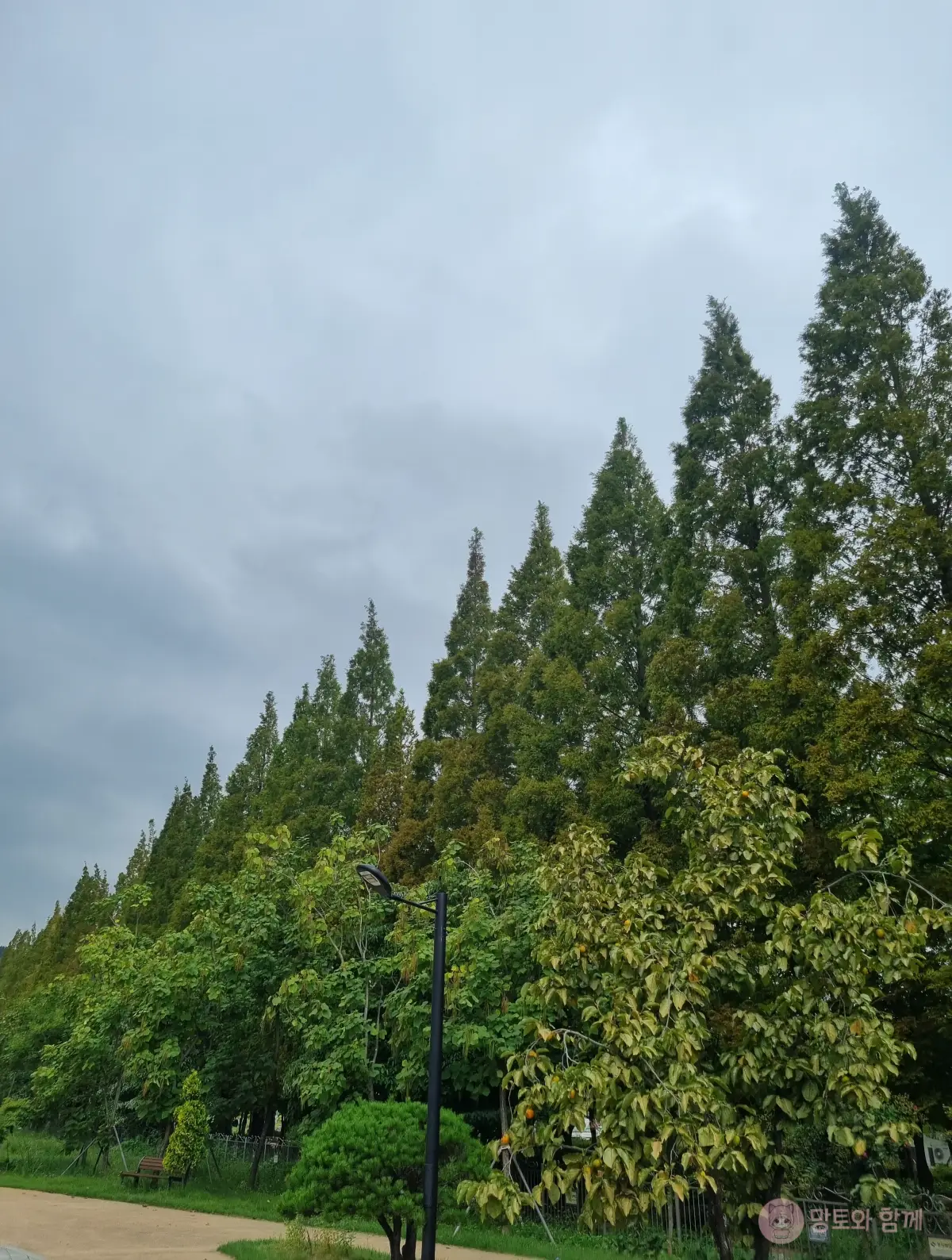 메타세쿼이어 안쪽을 걷기도 하지만 살짝 빠져서 바깥에서 보면 쭉쭉 뻗은 침엽수를 한 번에 볼 수 있어 또 새롭게 느껴졌어요.