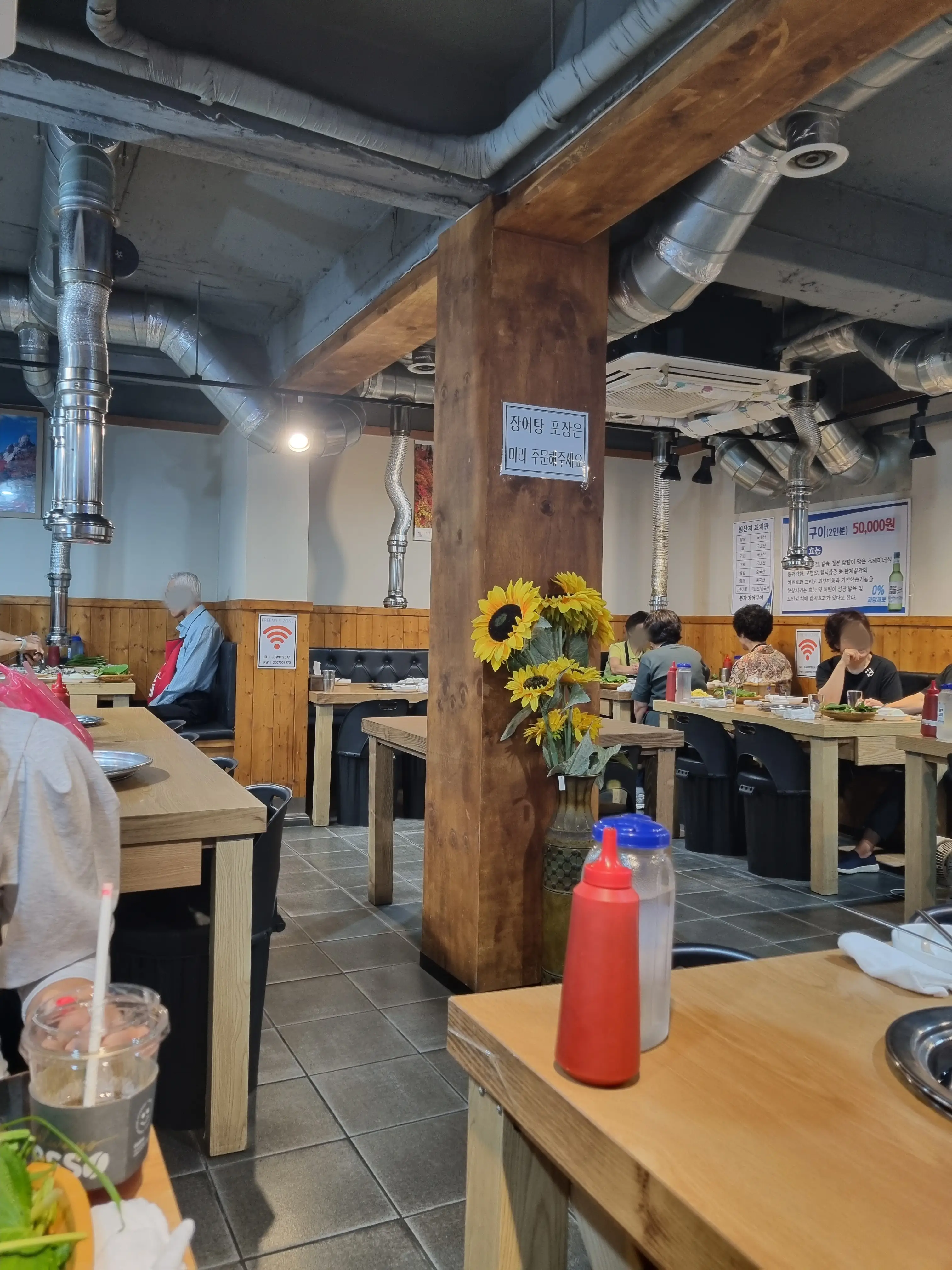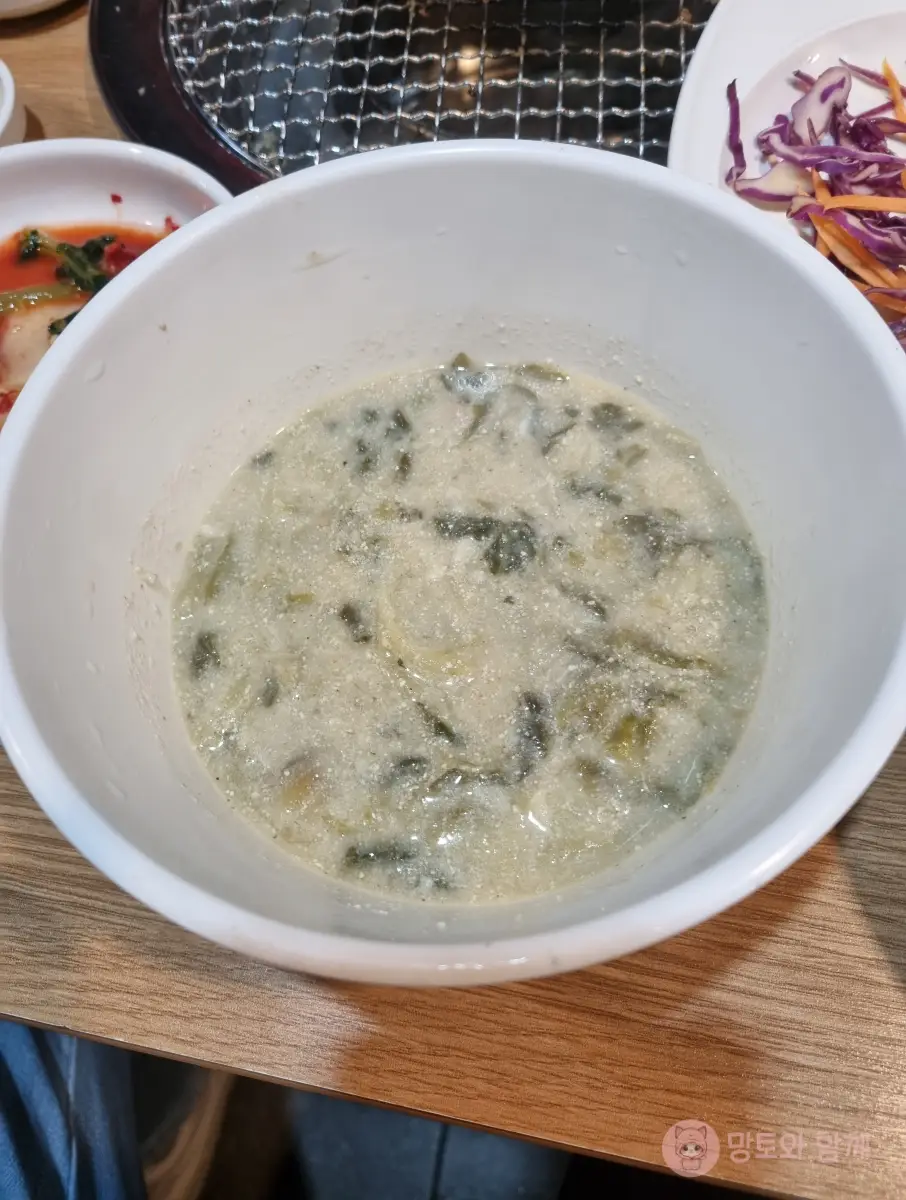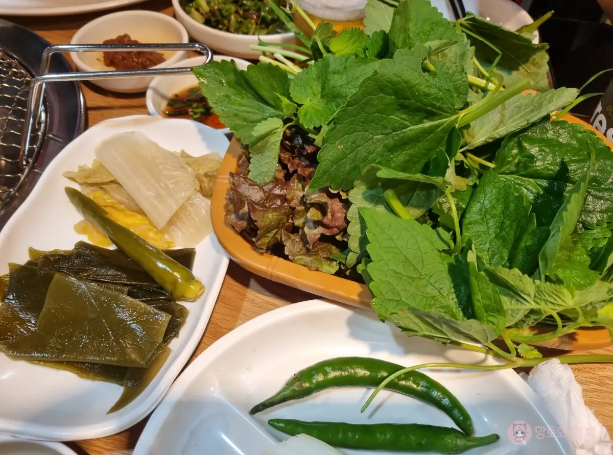 다른 지역에서는 방아잎을 본 적은 없는 것 같은데요. 친구들과 저는 방아잎을 좋아해서 쌈채소를 추가로 많이 먹었네요.