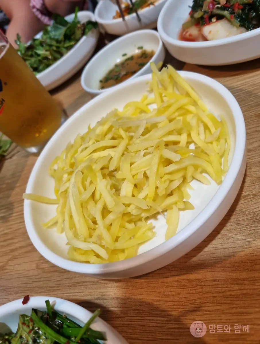 곁들임 반찬이 다양하게 있고 다 맛있어서 좋았어요. 어느 하나 흠잡을 데가 없네요.
