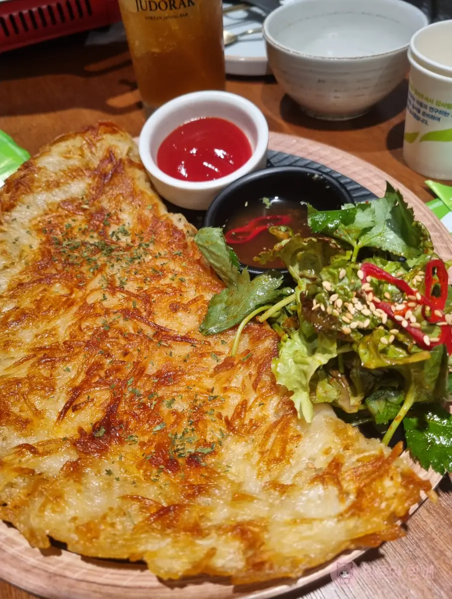 마지막 메뉴인 감자치즈채전이예요. 개인적으로 제일 맛있는 음식이었어요. 겉은 바삭하고 속은 촉촉한데 생각보다 느끼하지 않고 담백한 맛이었어요.