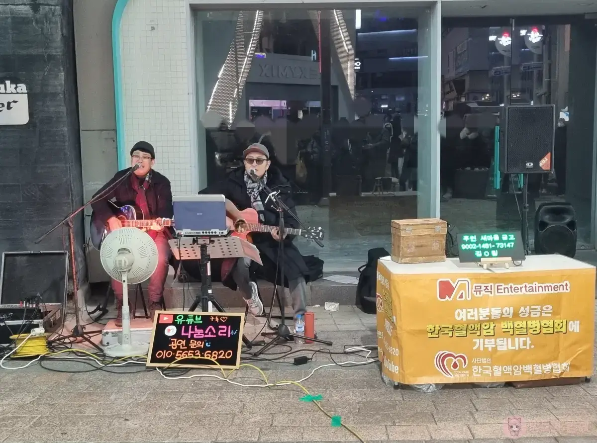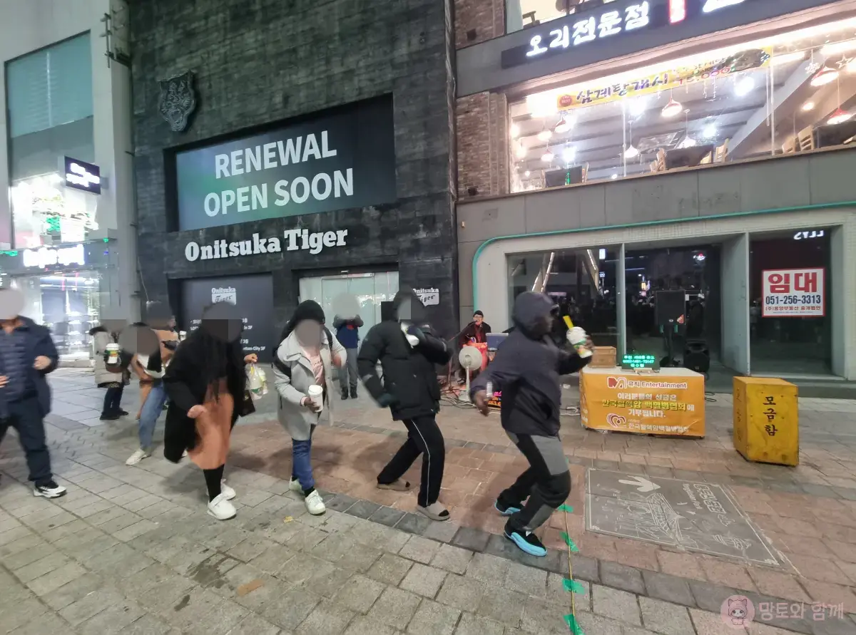 나눔소리라는 유튜브를 운영하시는 분들이 버스킹을 하고 있는데, 노래에 맞춰 춤추는 외국인들이네요.