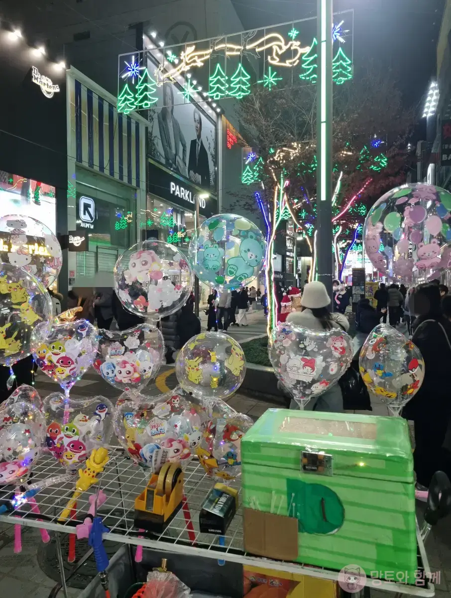 아이들이 좋아할 만한 곰돌이, 나비, 빛 열차까지 화려하게 빛나고 있네요.